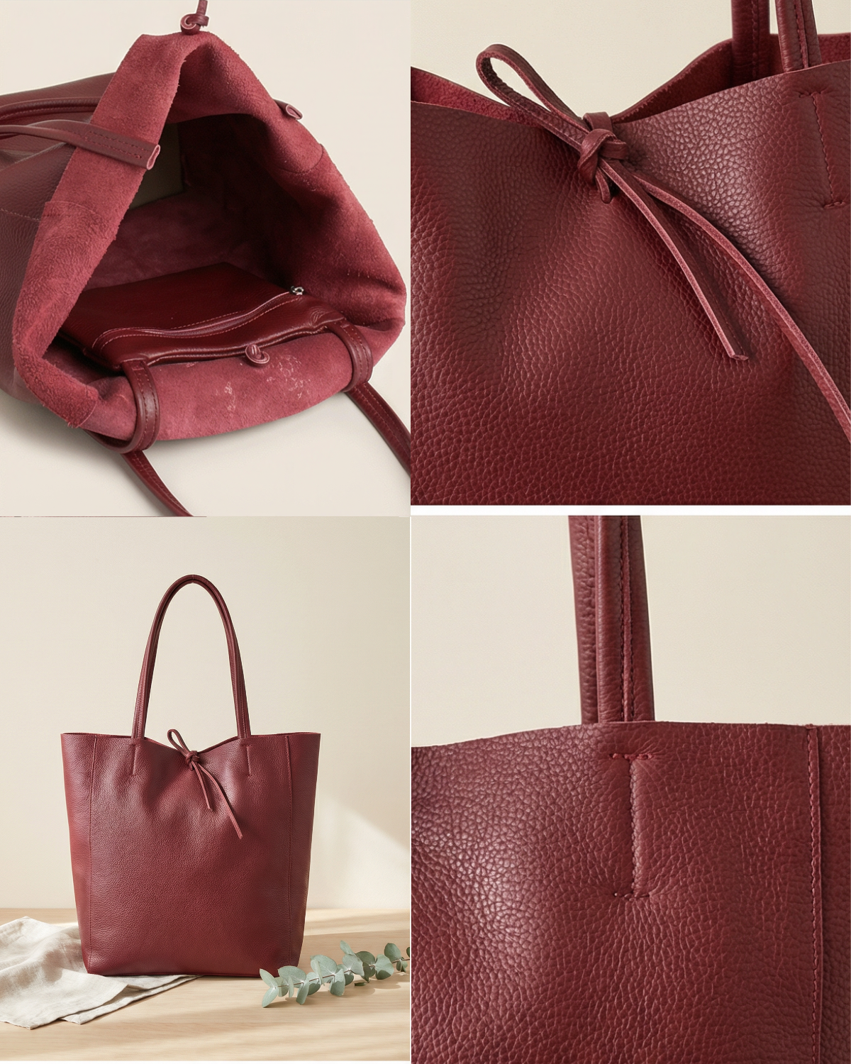 Amplio Bolso Shopper de Piel para Mujer con 2 Asas Largas.