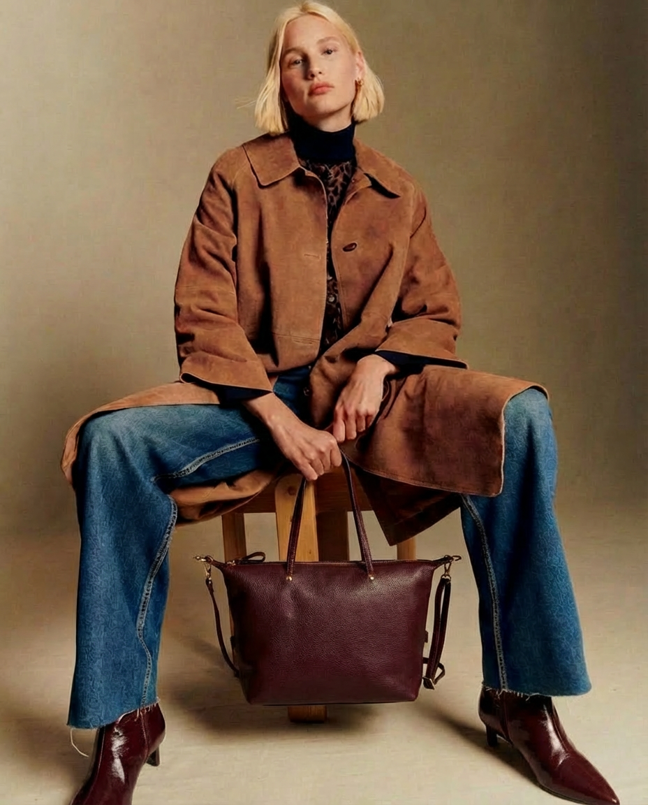 Bolso de piel granate shopper medium
