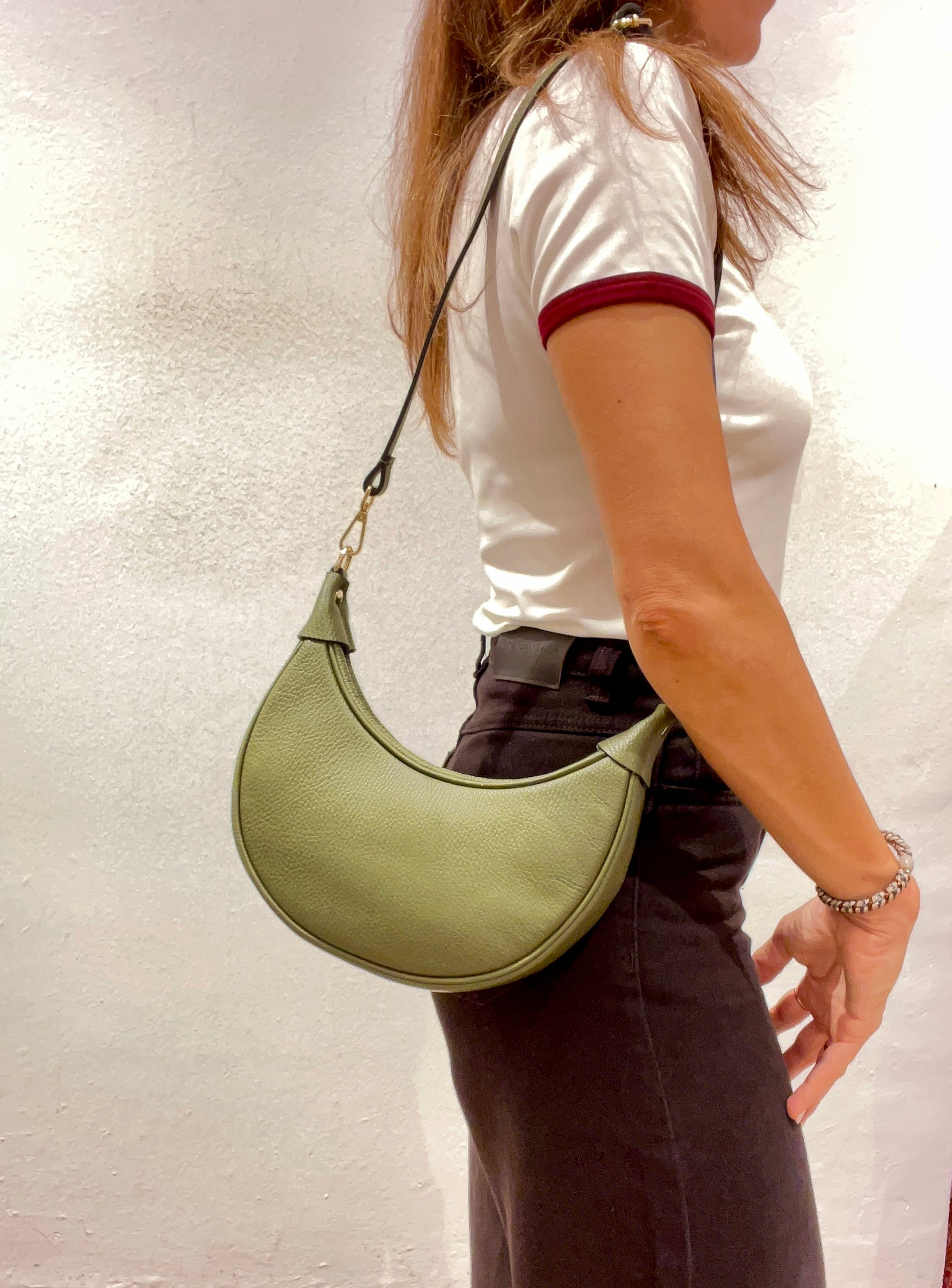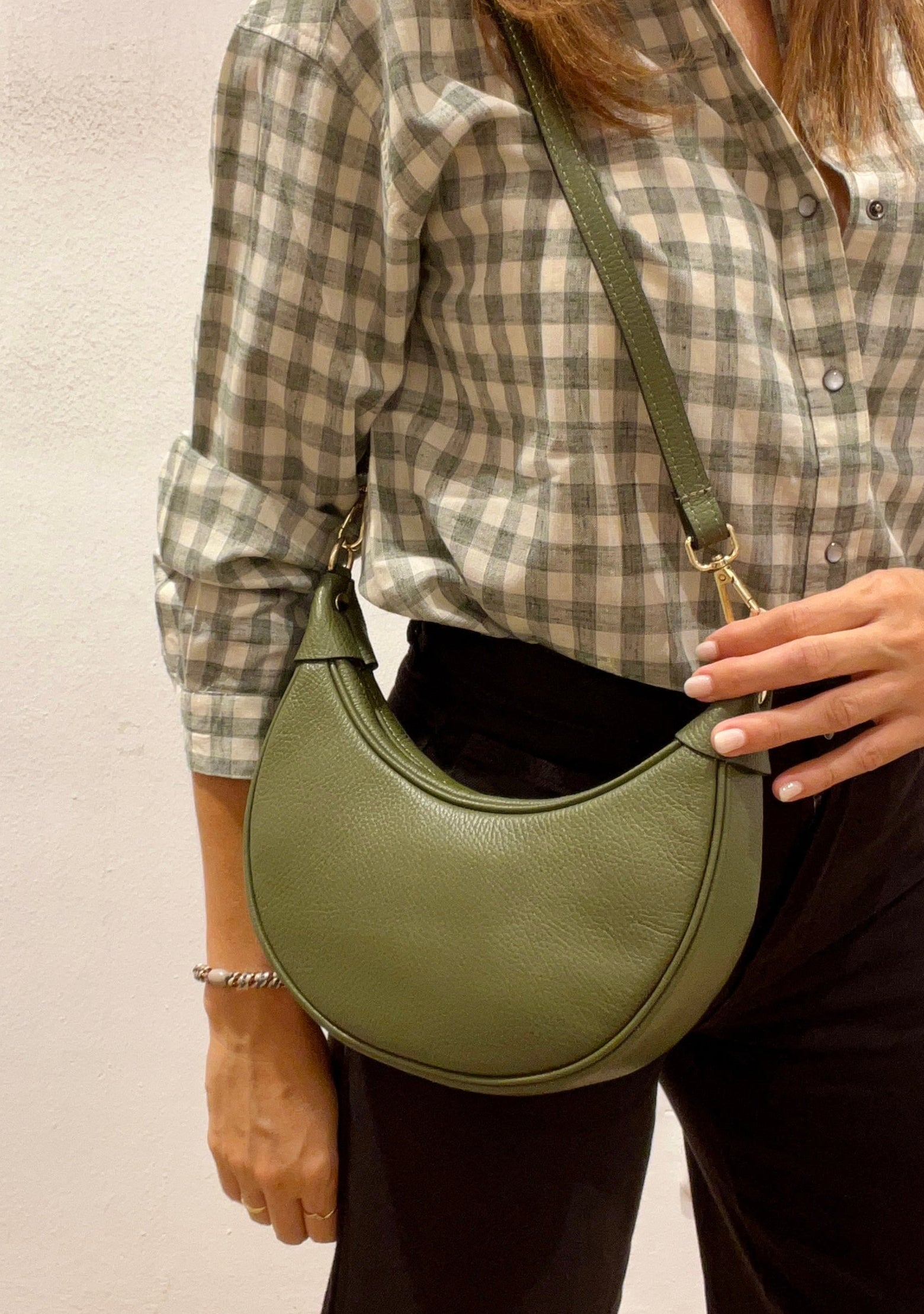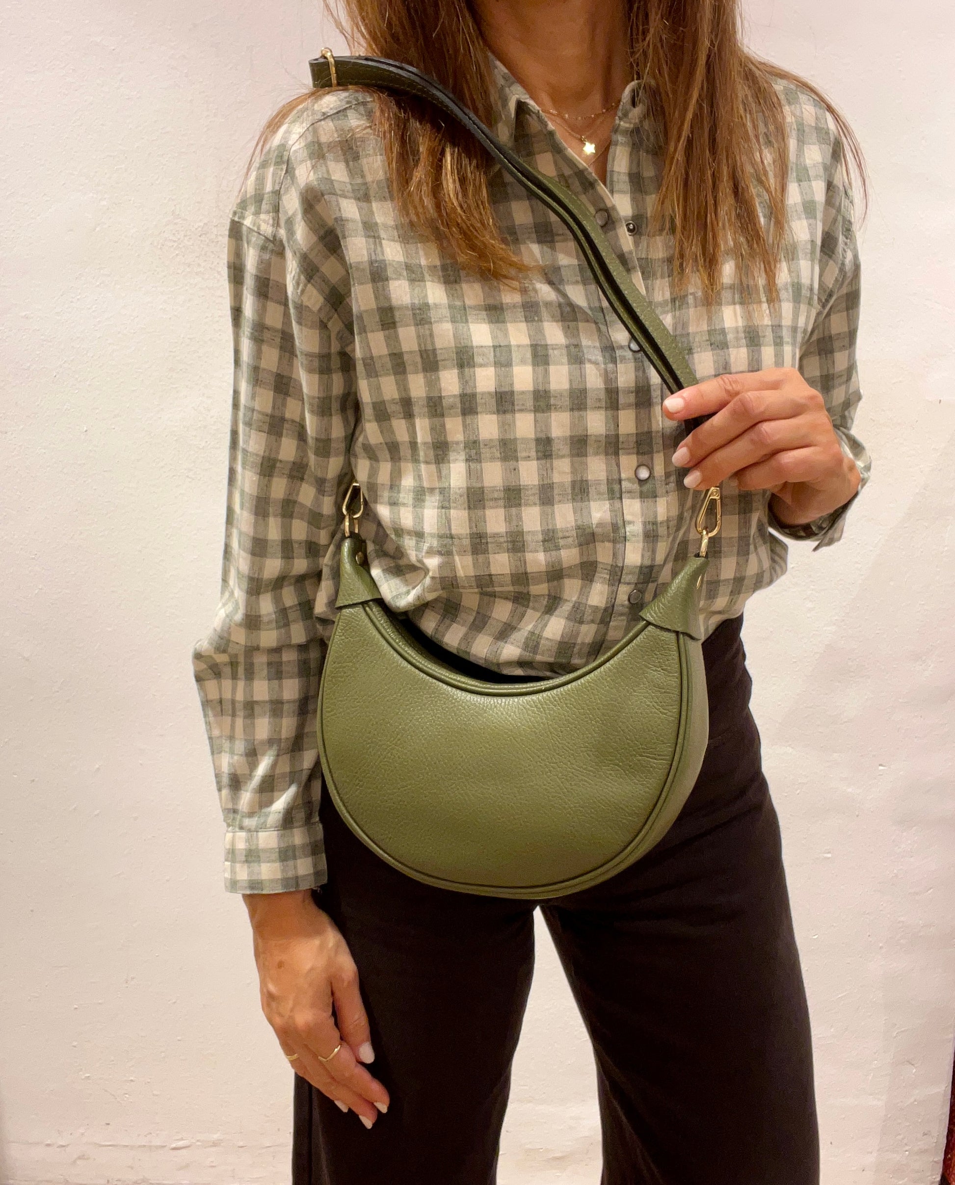Bolso de piel verde kaki LUNA