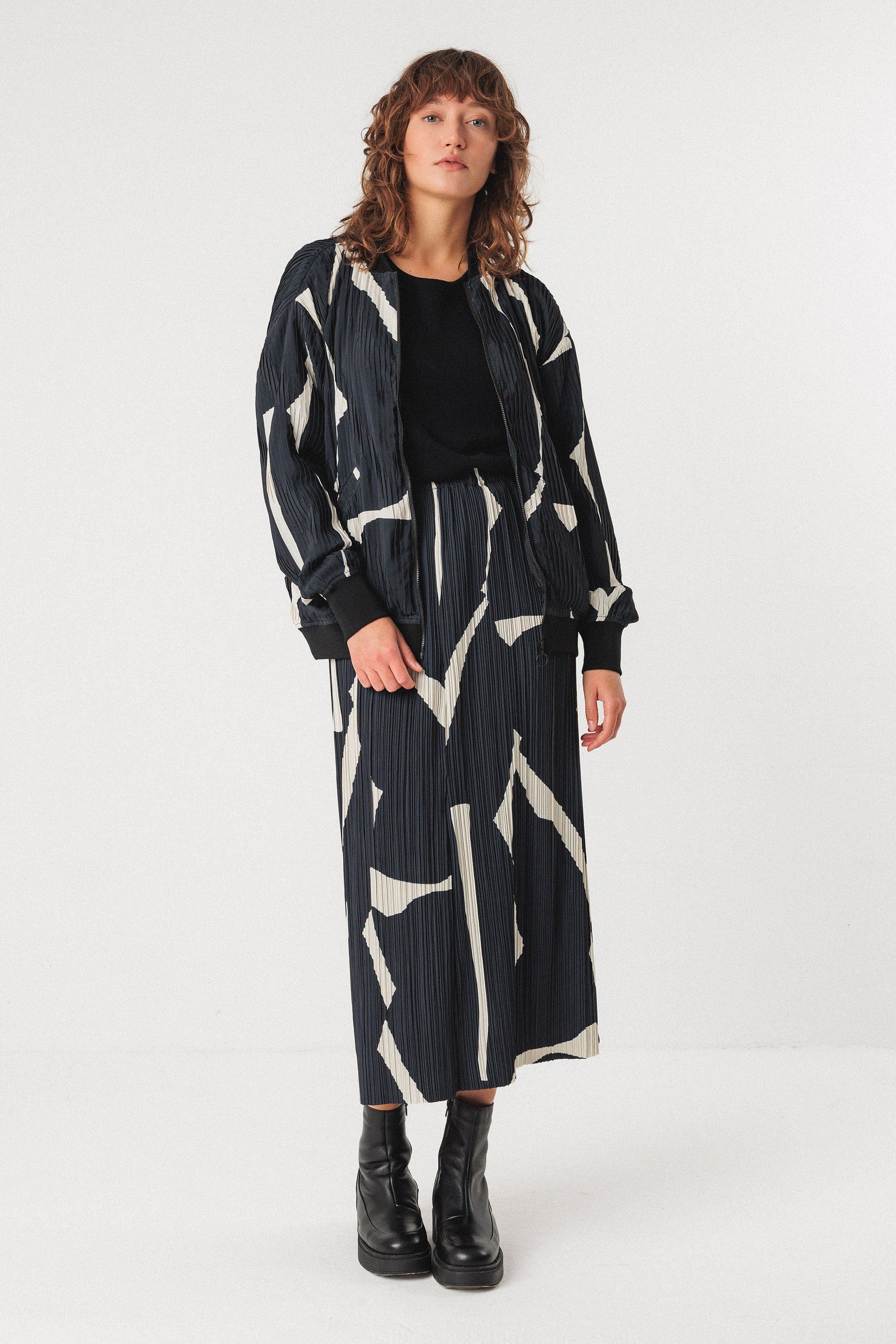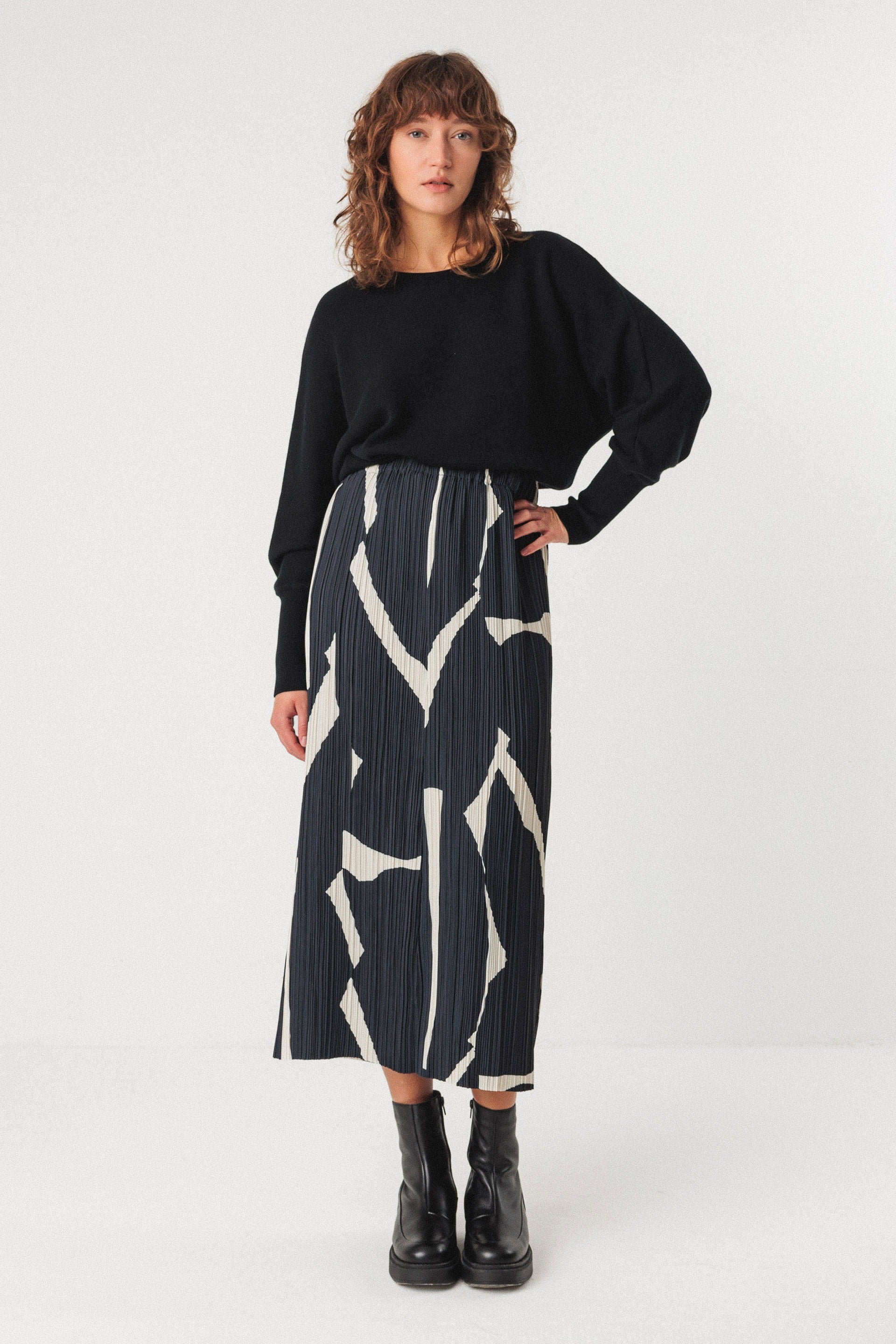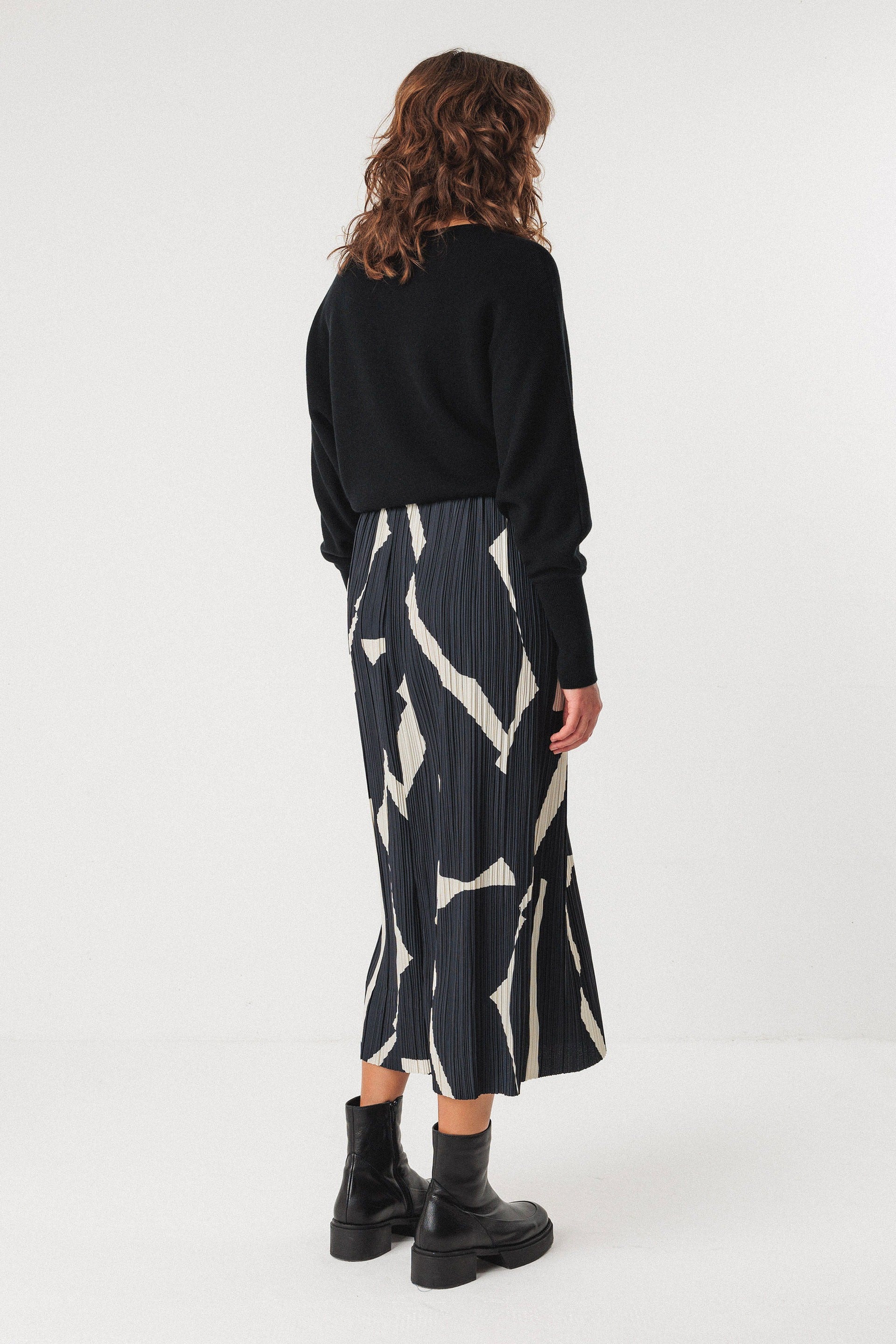 Falda midi acampanada de tejido plisado con la cintura elástica para ponérsela fácilmente.
