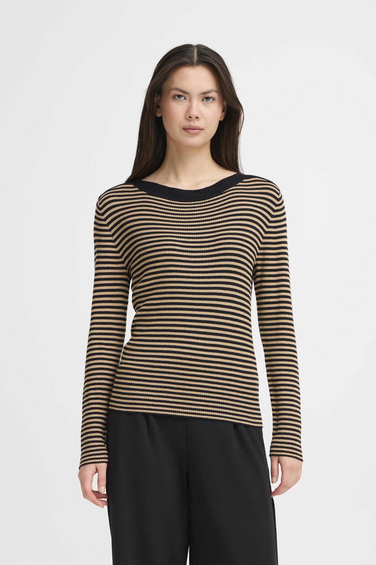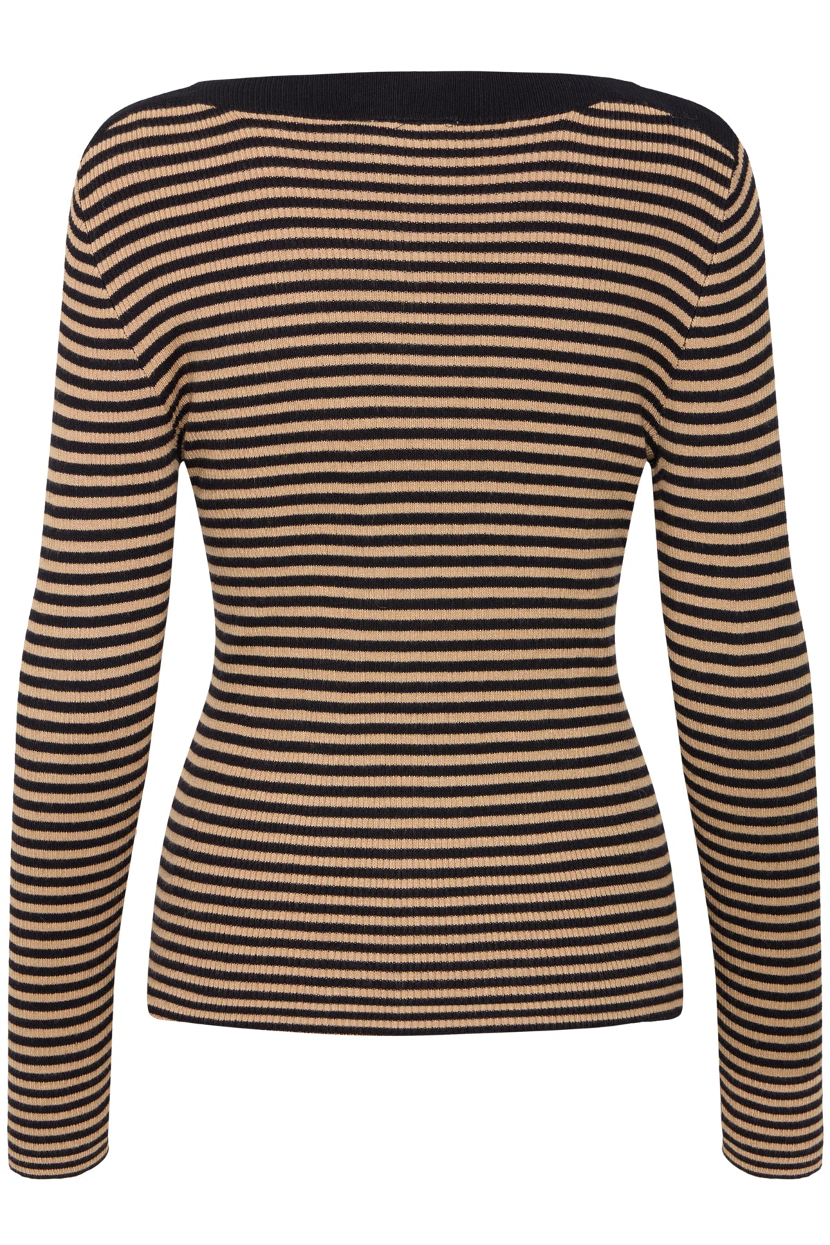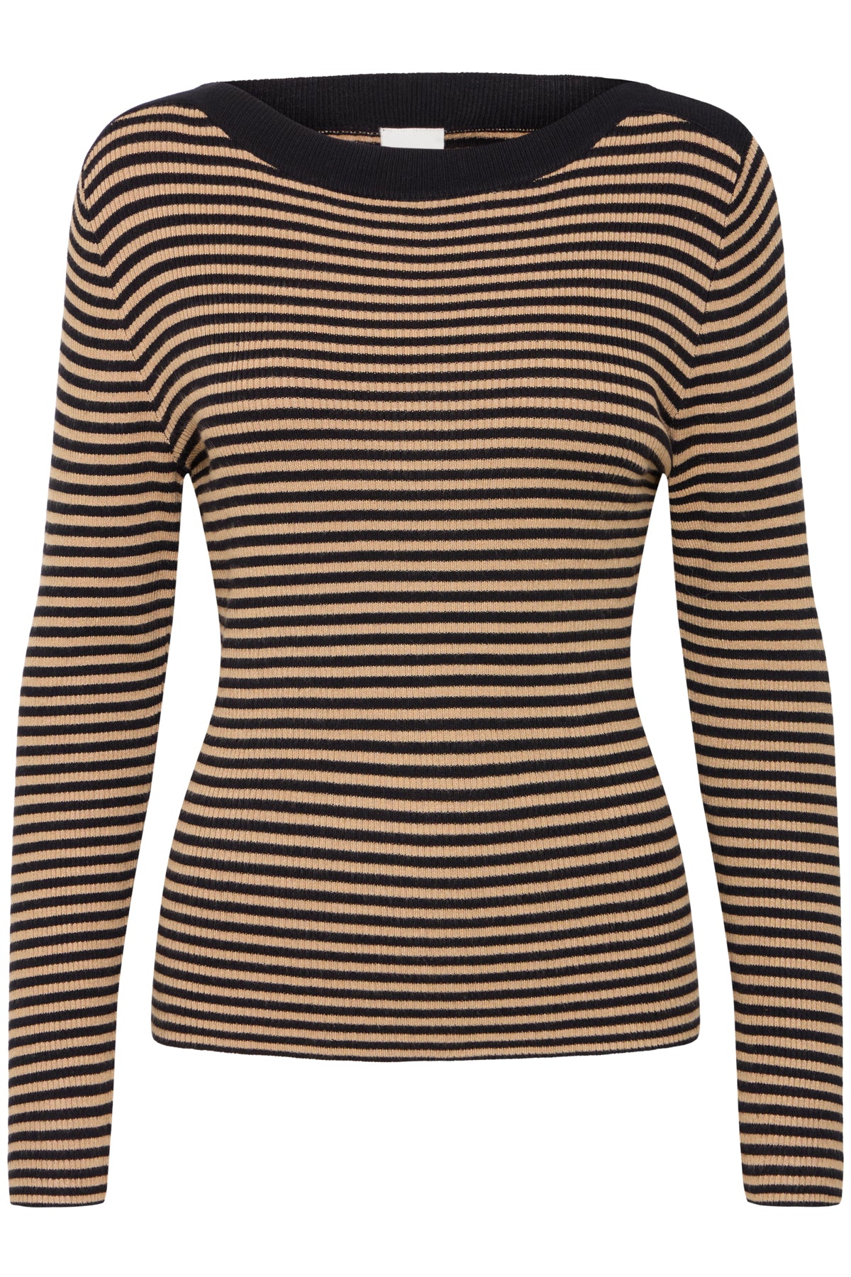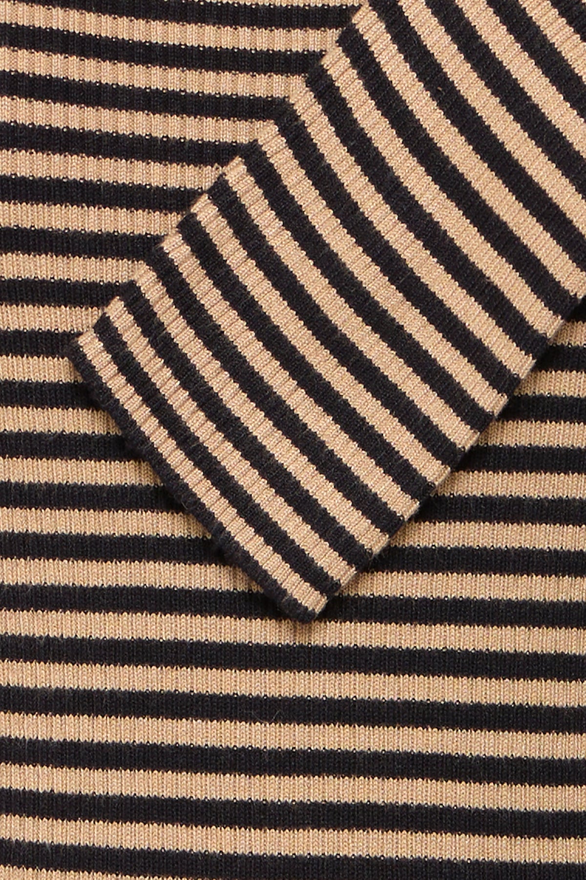 Jersey de punto fino a rayas. Confeccionado en suave punto de viscosa, ofrece una sensación suave y cómoda con una favorecedora silueta ajustada. Diseñada con un clásico cuello redondo y mangas largas, aporta un encanto atemporal a tu armario. Su corte recto y largo normal la hacen perfecta para combinar con vaqueros, faldas o pantalones de vestir. Versátil y elegante.