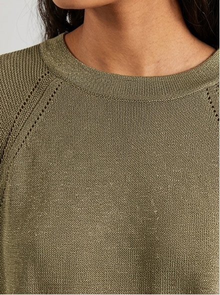 Jersey de cuello redondo con detalle troquelado y un toque de brillo