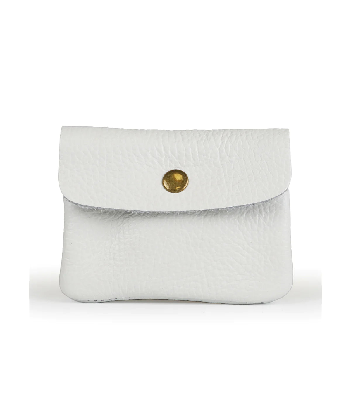 Monedero de cuero fabricado en Italia, cierre por botón, incorpora dos pequeños compartimentos ideal para dejar tarjetas o billetes y un bolsillo con cremallera para poder guardar las monedas.