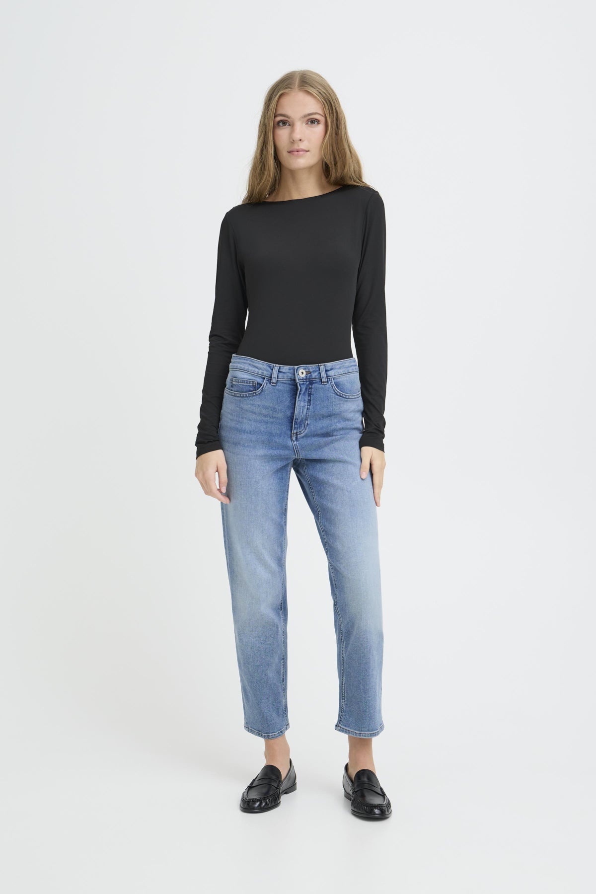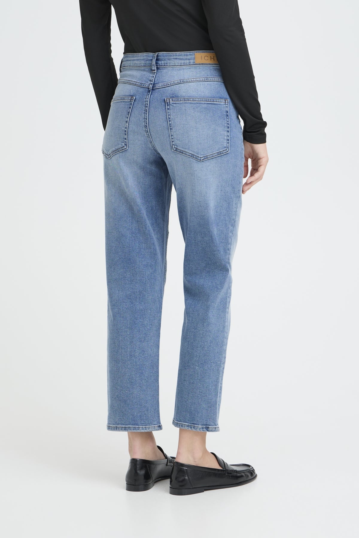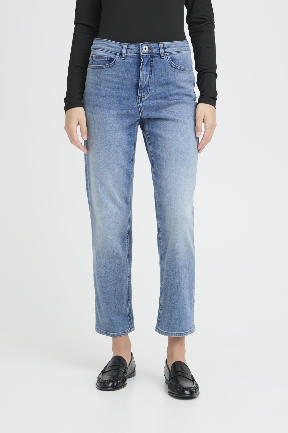 5 bolsillos. Color azul claro lavado. Cierre de cremallera