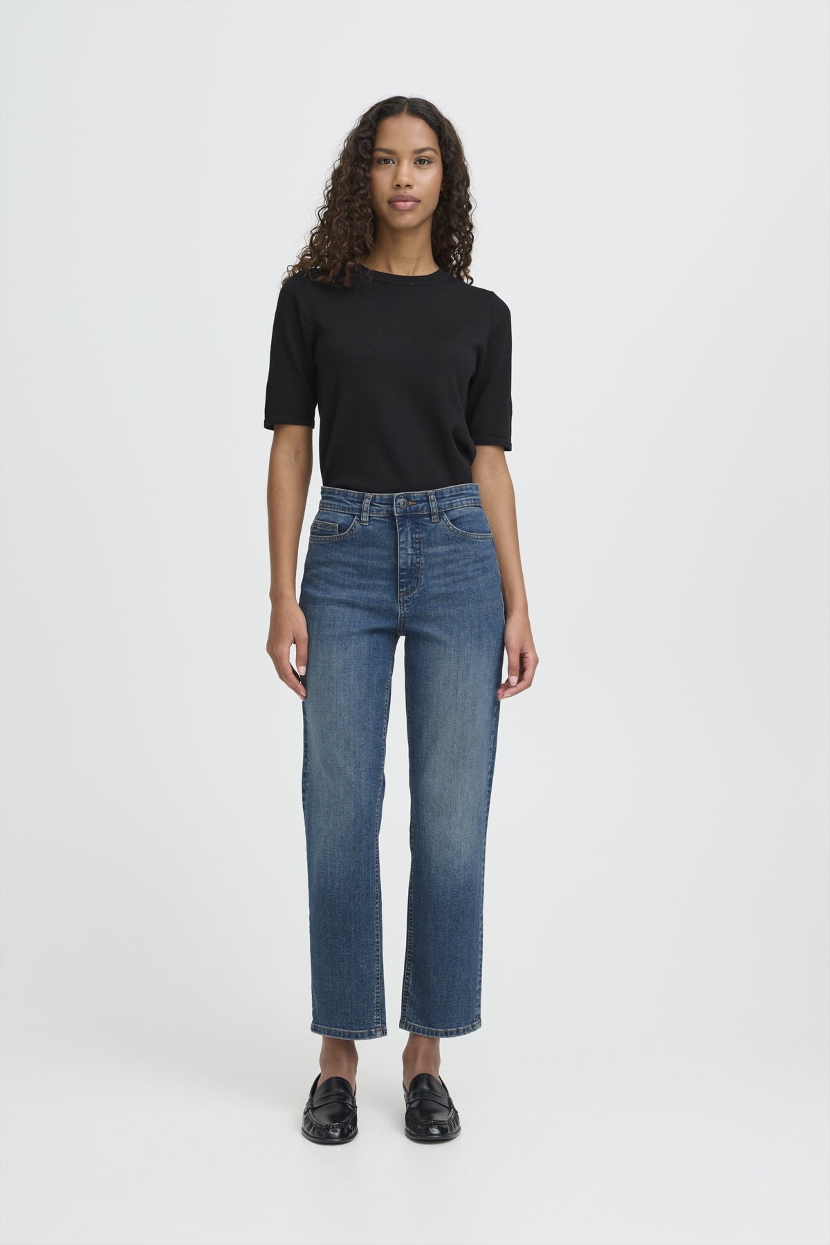 El clásico que vuelve con fuerza: vaquero recto de largo cropped en azul medio. Un fit cómodo y atemporal para combinar con todo sin pensarlo demasiado.